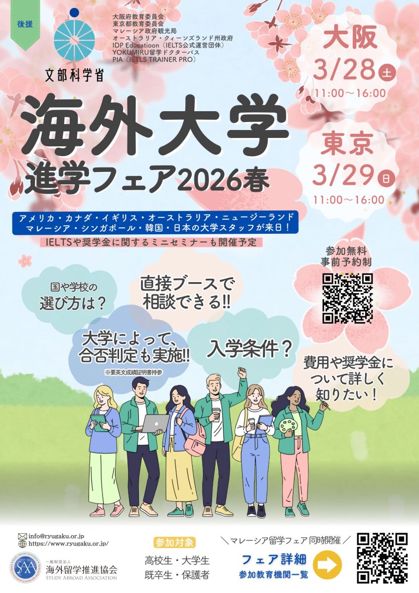 3/28大阪・3/29東京「海外大学進学フェア2026春」開催!